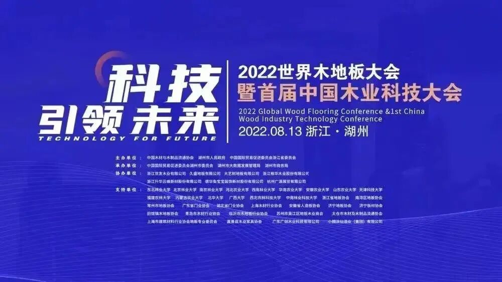 8月13日,2022世界木地板大会暨首届中国木业科技大会在浙江德清隆重召开。大会以“科技引领未来”为主题,践行“绿水青山就是金山银山”的可持续发展理念,深度解读国家产业规划和政策,推动我国木材与木制品产业创新与高质量发展,探讨木业后疫情时代的发展趋势。